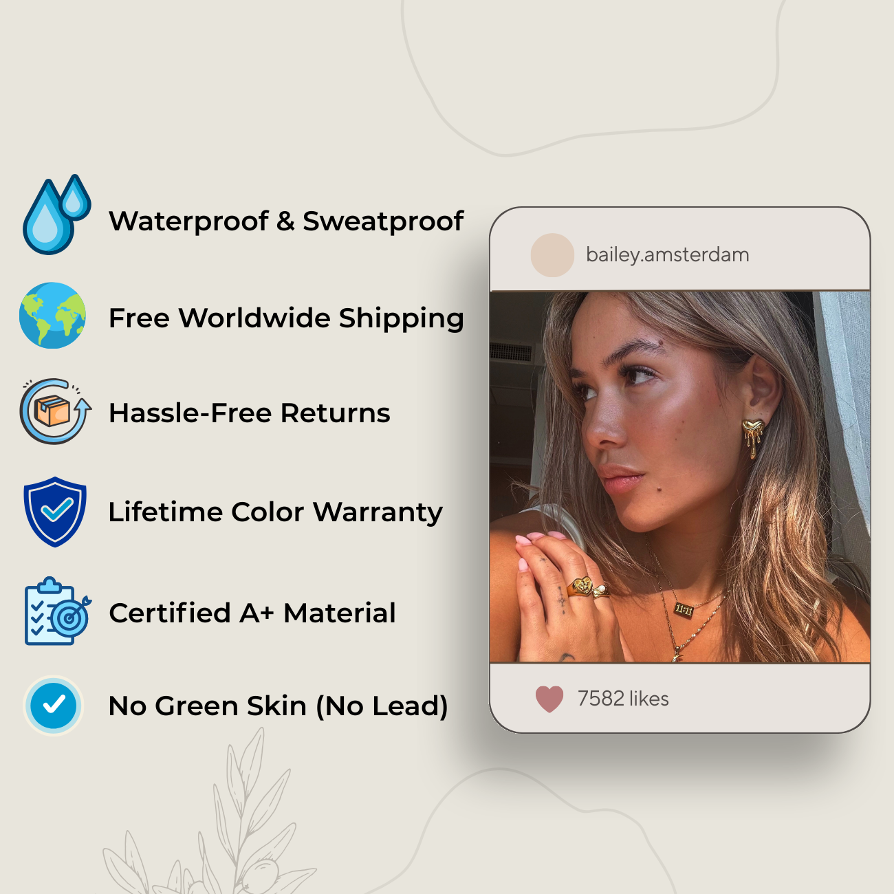 No tarnishing on our jewellery. Enjoy your jewellery in the gym, shower or even the sea.